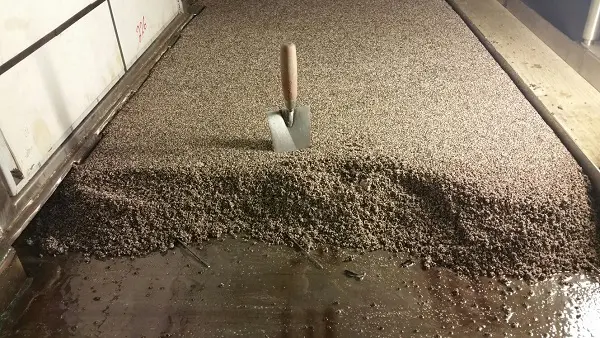 Epox-Torginol CS -epoksimassalattia (värjätyn tai luonnonhiekan ja värittömän epoksihartsin seos, paksuus 3-4 mm)